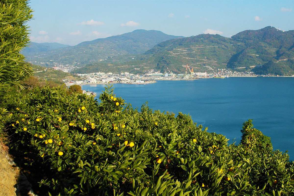 愛媛県は日本一の柑橘生産地です。なかでも西宇和地区で栽培される媛小春は、味・品質共に最高級のブランドです。だいすけ果樹園から出荷する生産地は、愛媛県の西南部に位置し、九州に突出た 40㎞の長さを有する日本一の佐田岬半島とその基部の八幡浜市・伊方町・西予市三瓶町の1市2町からなります。宇和海と瀬戸内海に囲まれた海岸部は典型的なリアス式海岸が続きます。地形は起状の多い傾斜地が連なり、平野部は極めて少ないです。土質は結晶片岩を母岩とする壌土・砂壌土が大部分を占めるほか、一部に秩父古成層・紋岩・石灰岩の層も見られます。日照量が多く、自然条件に恵まれ、媛小春栽培に適した環境となっています。