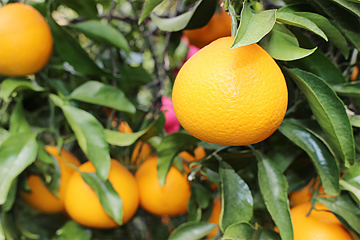 余分な水分を吸わさず、太陽の光をたっぷり浴びることが美味しい清見(きよみ)が育つ条件です。そのため清見(きよみ)園地では、真っ白なシート「タイベックシート」を樹の下に敷くマルチ栽培方法をしています。シートが雨水の吸収を制御し、最低限の水分で清見(きよみ)を育てます。また、シートを敷くことにより太陽の光を果実の下からも照らすことで、甘味が増し適度な酸味をギュッと蓄えた清見(きよみ)が育ちます。