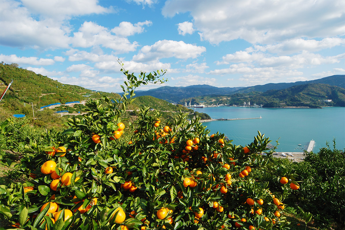 愛媛県は日本一の柑橘生産地です。なかでも西宇和・東宇和地区で栽培されるポンカンは、味・品質共に最高級のブランドです。だいすけ果樹園から出荷するポンカンは、愛媛県の西南部に位置し、九州に突出た、40㎞の長さを有する日本一の佐田岬半島とその基部の八幡浜市・伊方町かなる「西宇和地区」。古くから柑橘栽培の盛んな、明浜町・宇和町・野村町・宇和島市・西予市の「東宇和地区」からなっております。宇和海と瀬戸内海に囲まれた海岸部は典型的なリアス式海岸が続きます。地形は起状の多い傾斜地が連なり、平野部は極めて少ないです。土質は結晶片岩を母岩とする壌土・砂壌土が大部分を占めるほか、一部に秩父古成層・紋岩・石灰岩の層も見られます。日照量が多く、自然条件に恵まれ、ポンカン栽培に適した環境となっています。